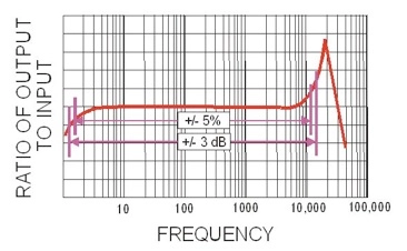 下記グラフは、典型的な加速度計の周波数応答を示しており、校正周波数が動作の「フラット応答」領域内であることがわかります。