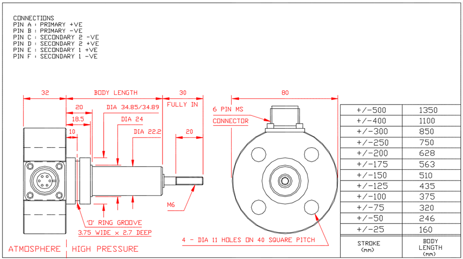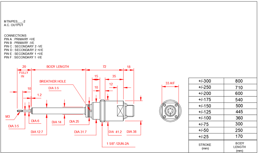 耐圧シリーズは、コアと内部アセンブリ間に最大6000 PSI(400 Bar)の圧力を許容するように設計されています。LVDTがシリンダー内のフィードバックループ信号源として機能する油圧アプリケーションで広く使用されています。